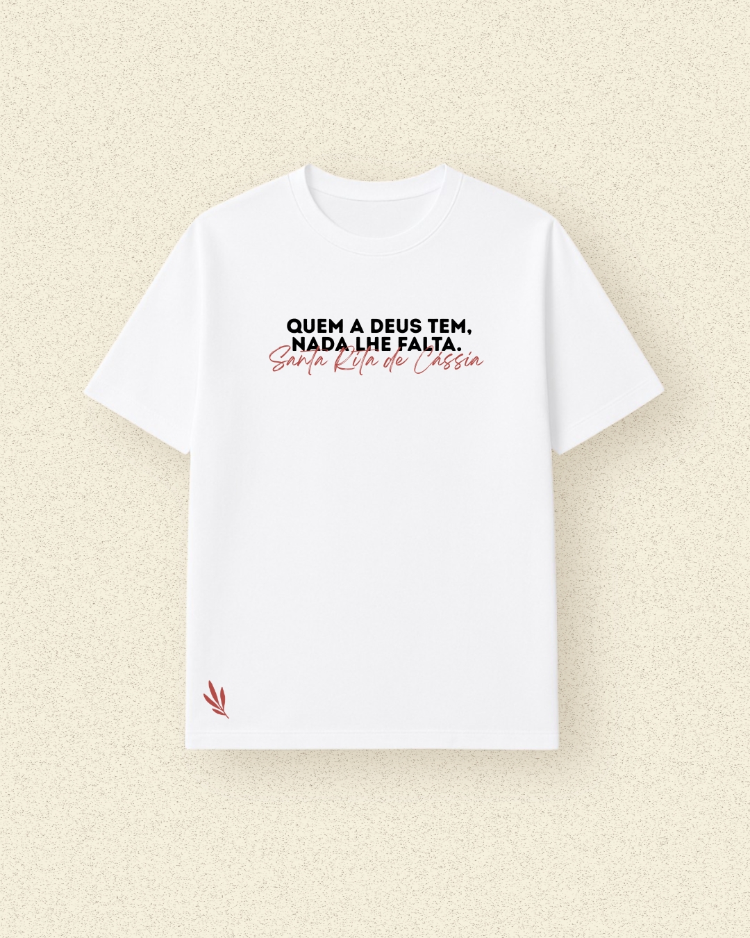 Inspirada em Santa Rita de Cássia, a estampa fala de fé perseverante e esperança que transforma feridas em flores.